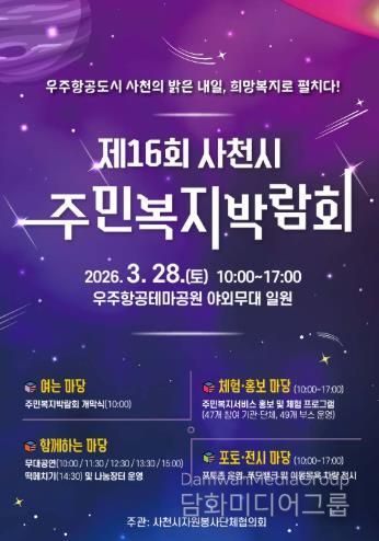 시민행정신문 강갑수 기자 | 사천시자원봉사단체협의회가 주관하는 '제16회 사천시 주민복지박람회'가 3월 28일 우주항공테마공원에서 개최된다.