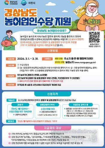 시 관계자는 "3월 31일까지의 접수기간을 놓치지 않도록 대상 농어업인들의 관심과 신청을 부탁드린다"며 "농어업인수당이 농어업인의 경영 부담을 덜고 지역 농어업의 지속 가능한 발전을 뒷받침하는 실질적인 지원책이 되길 바란다"고 말했다.