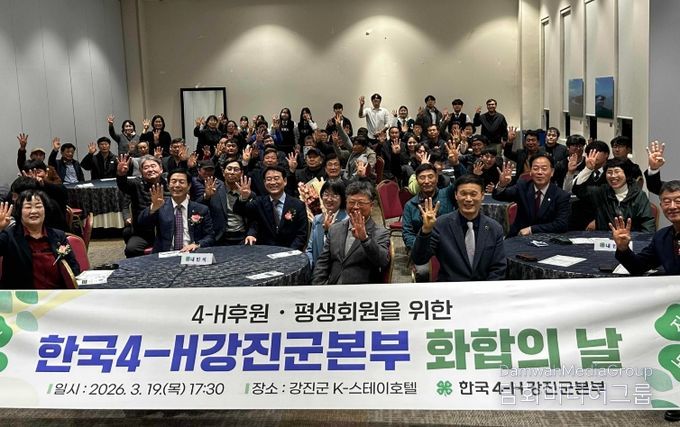 시민행정신문 강갑수 기자 | 한국4-H강진군본부(회장 윤윤근)가 지난 19일 강진 K-스테이호텔에서 선후배 회원과 평생회원, 후원회원이 함께하는 ‘2026 화합의 날’ 행사를 개최했다. 이번 행사는 한국4-H강진군본부 회원들이 한자리에 모여 그동안의 활동을 돌아보고 회원 간 화합과 결속을 다지기 위해 마련됐다.
