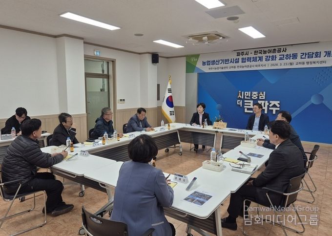 시민행정신문 강갑수 기자 | 파주시농업기술센터는 지난 23일 교하동 행정복지센터에서 한국농어촌공사 파주지사와 함께 농업생산기반시설의 효율적 관리를 위한 협력 방안을 논의하는 간담회를 개최했다.