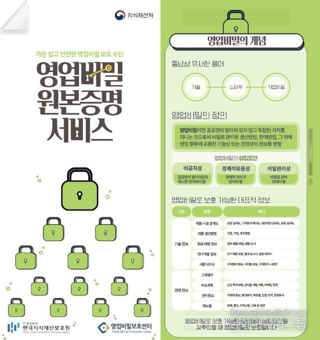 영업비밀 원본증명 서비스는 영업비밀을 보유하고 있는 기업에서 원본 전자파일의 고유값을 원본증명기관에 등록하여 분쟁 발생 시 영업비밀의 존재 여부와 보유 시점을 입증하도록 하는 서비스다.