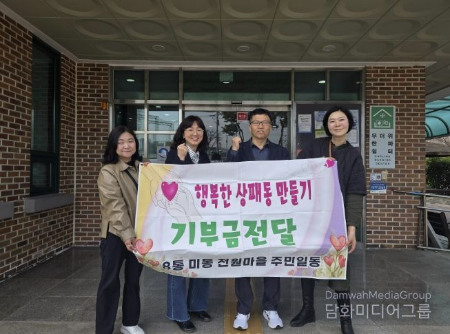 시민행정신문 강갑수 기자 | 동두천시 상패동 8통 미동전원마을 주민들이 지난 3월 23일 상패동 행정복지센터에 어려운 이웃을 돕기 위한 성금 100만 원을 전달했다.