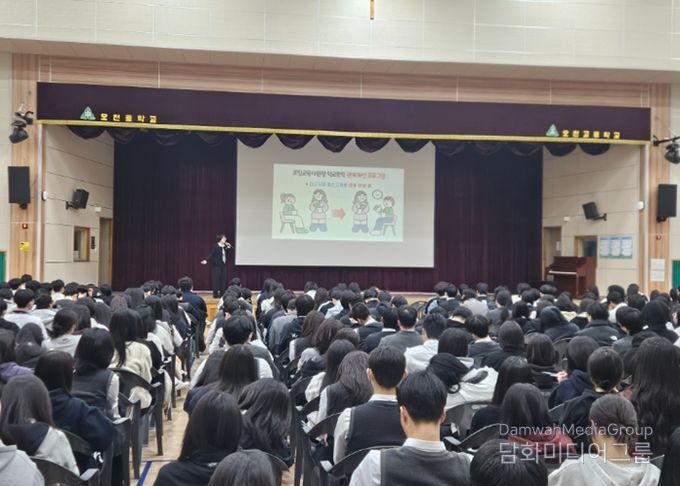 이날 교육에는 교육지원청에서 학교폭력 심의를 담당하는 장학사가 직접 학교를 방문해 학교폭력 신고부터 종결까지의 과정 안내 , 갈등 발생 시 법적 분쟁 이전의 평화로운 해결 방안 모색을 위한 ‘관계개선 프로그램’ 등을 중점적으로 교육했다. 학생들은 일상 속 갈등과 학교폭력을 올바르게 구분하고, 관계회복 프로그램의 긍정적 영향을 공감하는 소중한 시간을 가졌다.