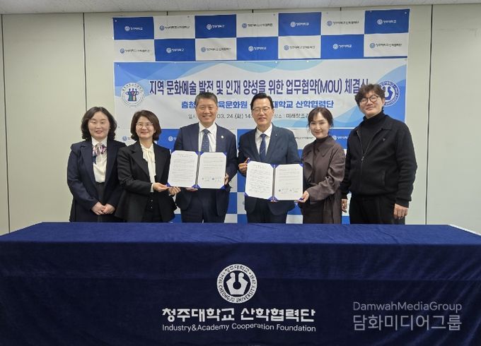 시민행정신문 기자 | 충청북도교육청 직속기관 교육문화원(원장 서종덕)은 청주대학교 산학협력단(단장 홍양희)과 24일, '나도 예술가' 정책 추진과 협력적 예술교육 생태계 조성을 위해 업무협약(MOU)을 체결했다.