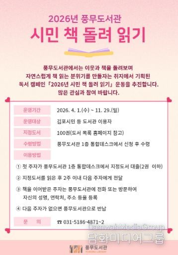 시민행정신문 기자 | 김포시 풍무도서관은 오는 4월부터 ‘2026년 시민 책 돌려 읽기’ 독서 릴레이를 운영한다.