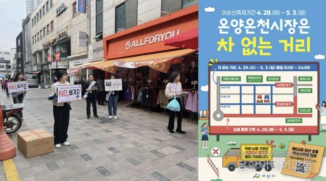 이번 캠페인은 축제 기간 운영 예정인 온양온천시장에 ‘차 없는 거리’를 조성하고, 음식 정찰제 시행 등을 시민과 방문객에게 알리며 전통시장을 중심으로 한 축제 분위기를 조성하기 위해 추진됐다.