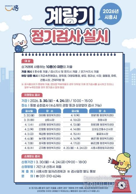 시민행정신문 강갑수 기자 | 시흥시는 공정한 상거래 질서 확립과 소비자 권익 보호를 위해 오는 3월 30일부터 4월 24일까지 ‘2026년 계량기(저울) 정기 검사’를 실시한다.