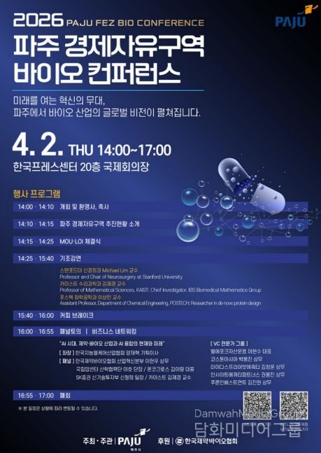 시민행정신문 강갑수 기자 | 파주시는 오는 4월 2일 14시, 서울 중구 한국프레스센터 국제회의장에서 녪파주 경제자유구역 바이오 컨퍼런스’를 개최한다.