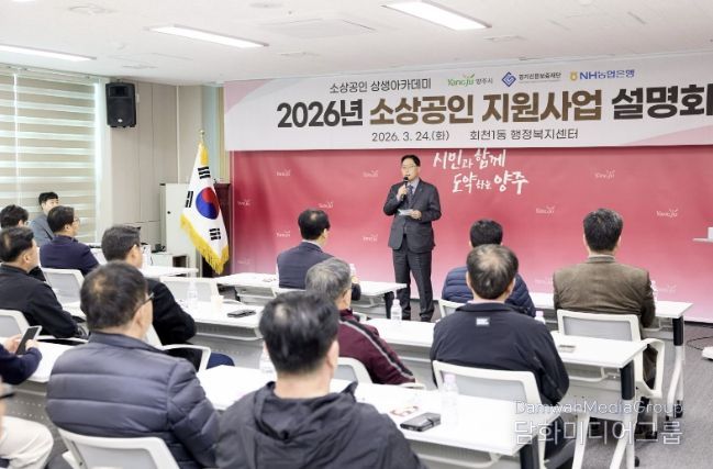 시민행정신문 강갑수 기자 | 양주시가 지난 24일 회천1동 행정복지센터에서 고물가, 고금리, 소비심리 위축 등으로 인해 경영 애로를 겪는 관내 소상공인의 경쟁력 강화를 위해 ‘2026년 소상공인 지원사업 설명회’를 개최했다.