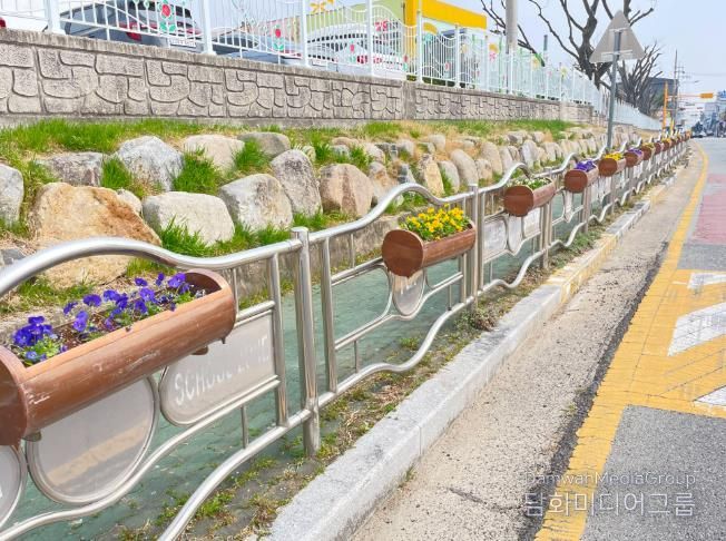 비올라 특유의 밝고 선명한 색채가 도로변 분위기를 생동감 있게 만들며, 주민과 학생들이 체감할 수 있는 계절의 변화를 전하고 있다.