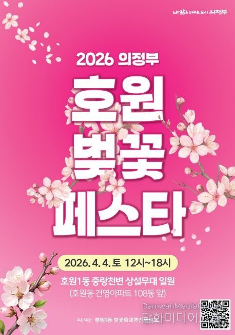 시민행정신문 기자 | 의정부시 호원1동주민센터는 4월 4일 낮 12시부터 오후 6시까지 호원1동 중랑천변 상설무대 일원에서 ‘2026 의정부 호원 벚꽃 페스타’를 개최한다.
