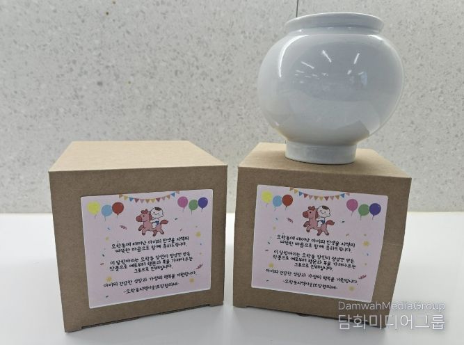 출생 신고를 마친 가정에 전달될 ‘소형 달항아리’는 예로부터 풍요와 복, 행운을 상징하는 전통 도자기다. 달항아리의 둥근 형태처럼 아이가 원만하고 건강하게 성장하기를 바라는 마음과 가정에 복이 가득 담기길 기원하는 메시지를 함께 전달할 예정이다.