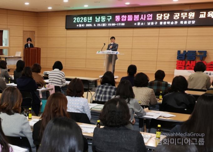 남동구는 최근 남동구 평생학습관 채움강당에서 동 행정복지센터, 보건소, 구청 관련 부서 담당 공무원 70여 명이 참석한 가운데 사업의 성공적 안착과 홍보 강화를 위한 직무 교육을 실시했다고 25일 밝혔다.