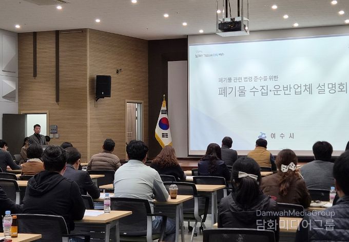 시민행정신문 김학영 기자 | 여수시가 지난 24일 여수상공회의소 회의실에서 관내 폐기물 수집운반업체를 대상으로 ‘폐기물 관련 법령 준수사항 및 위반사례 안내 설명회’를 개최했다고 밝혔다.