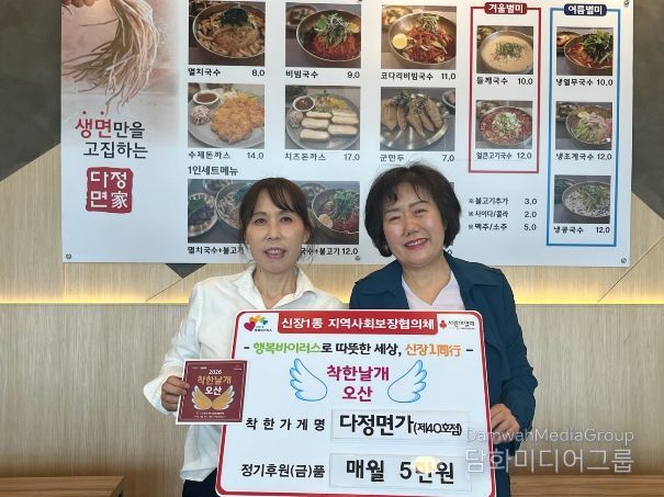 한편 신장1동은 착한가게 발굴을 지속적으로 확대하며 지역 내 나눔문화 확산과 촘촘한 돌봄체계 구축을 위한 다양한 복지사업을 이어갈 계획이다.