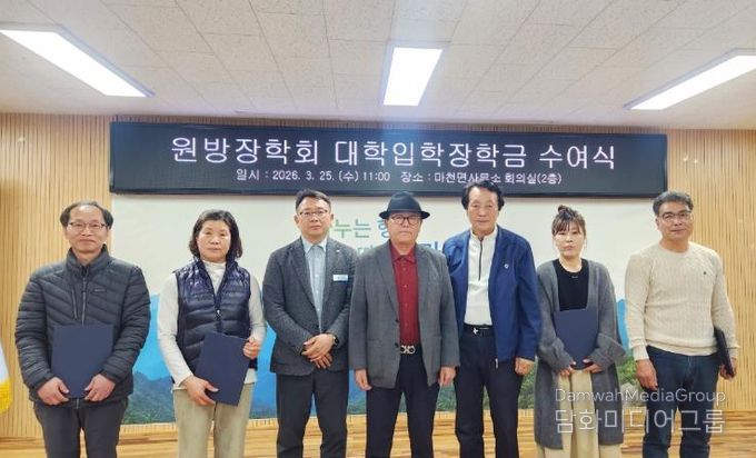 원방장학회는 25일 오전 11시 마천면사무소 회의실에서 장학금 전달식을 열고 마천초등학교와 마천중학교 출신 대학 신입생 4명에게 1인당 200만 원씩 총 800만 원의 장학금을 전달했다.