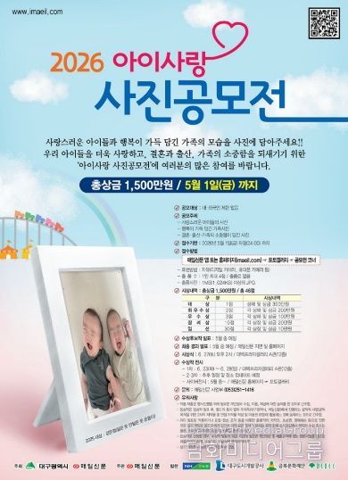 시민행정신문 강갑수 기자 | 대구광역시는 3월 26일부터 5월 1일까지 아이와 가족이 함께하는 행복한 순간을 담은 ‘2026 아이사랑 사진 공모전’을 개최한다.