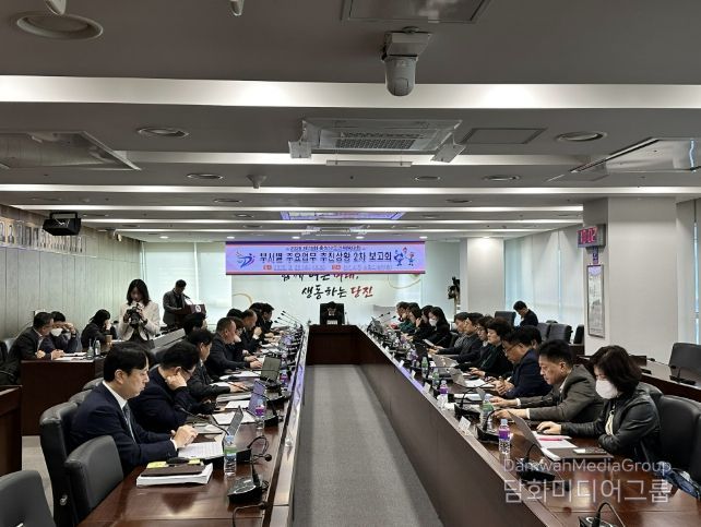 보고회는 부서별로 담당하는 주요 업무의 추진 현황과 세부 실행 계획을 발표하고, 실무 부서 간의 소통을 통해 준비 과정에서의 예상 문제점을 사전에 파악해 실질적인 해결 방안을 모색하는 순서로 진행했다.