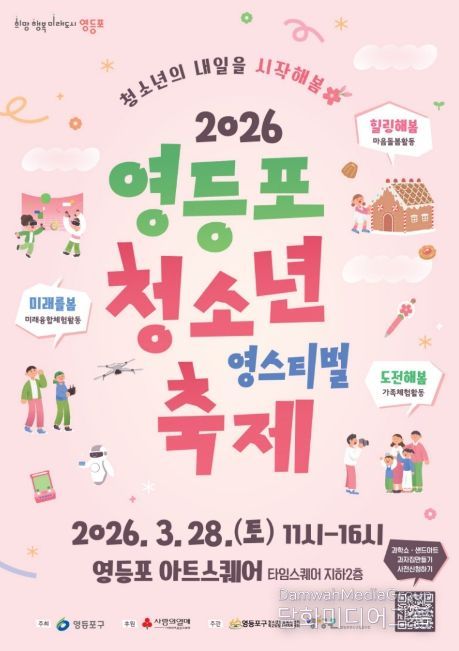 시민행정신문 이존영 기자 | 영등포구가 오는 3월 28일, 새 학기를 맞은 청소년들의 희망찬 출발을 응원하기 위해 영등포 아트스퀘어와 타임스퀘어 광장에서 청소년 축제 ‘영스티벌’을 개최한다고 밝혔다.