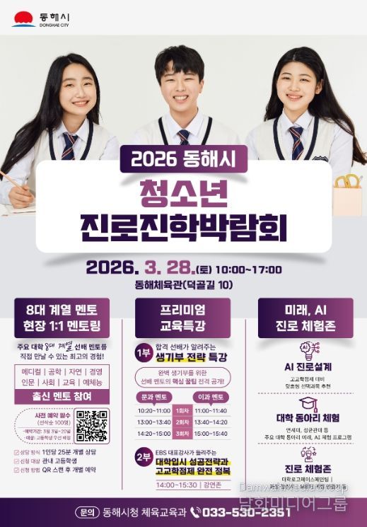 시민행정신문 강갑수 기자 | 동해시는 오는 3월 28일 오전 10시부터 오후 5시까지 동해체육관에서 ‘2026 동해시 청소년 진로·진학 박람회’를 연다.