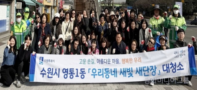 시민행정신문 강갑수 기자 | 영통구 영통1동 행정복지센터는 지난 3월 25일 새봄을 맞아 쾌적한 도시환경 조성을 위한 ‘새봄맞이 일제 대청소’를 실시했다.