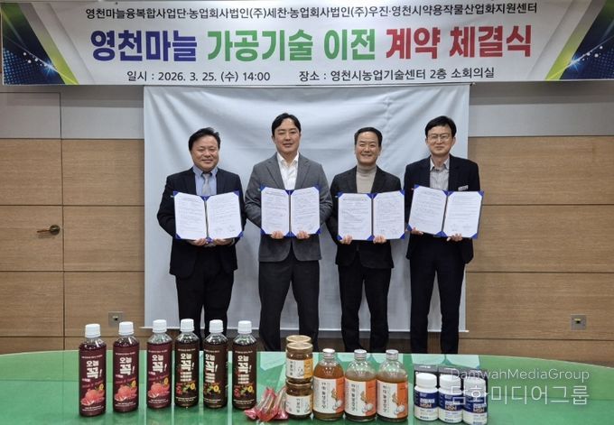 최재열 영천마늘농촌융복합사업단장은 “이번 기술이전은 공공에서 축적한 연구 성과를 민간과 공유하는 중요한 전환점”이라며, “앞으로도 제품 고도화와 유통·마케팅을 병행해 영천마늘 가공산업 생태계 조성에 적극 노력하겠다”고 전했다.