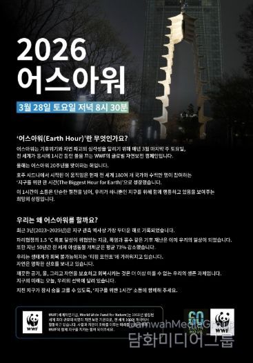 한편, 어스아워는 2007년 호주 시드니에서 시작돼 현재 190여 개 국가가 참여하는 글로벌 캠페인이다. 전 세계 누구든지 한 시간 동안 불필요한 전등을 끄는 방식으로 어스아워에 참여할 수 있다.