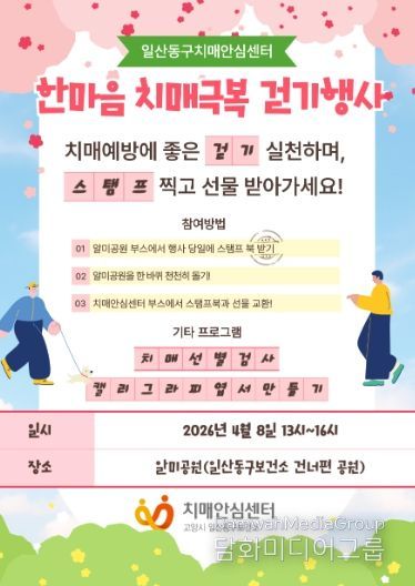 시민행정신문 기자 | 고양특례시 일산동구보건소 치매안심센터에서는 치매에 대한 사회적 공감대 형성 및 치매 친화적 사회를 조성하고자 한마음 치매극복 걷기 행사를 오는 4월 8일 백석동 알미공원(일산동구 중앙로 1087-2)에서 진행한다.