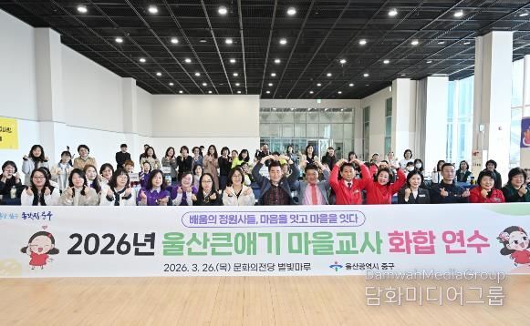 시민행정신문 강갑수 기자 | 울산 중구가 3월 26일 오전 10시 울산 중구문화의전당 별빛마루에서 ‘배움의 정원사들, 마음을 잇고 마을을 잇다’라는 주제로 ‘울산큰애기 마을교사 화합 연수’를 개최했다.