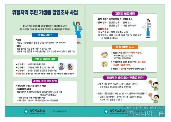 한편, 지난해 충주시에서 실시한 장내기생충 감염조사에서는 간흡충 양성률이 1.92%(9/469명)로 나타났으며, 투약 후 재검사 결과 전원 음성으로 판정돼 치료 효과가 확인된 바 있다.