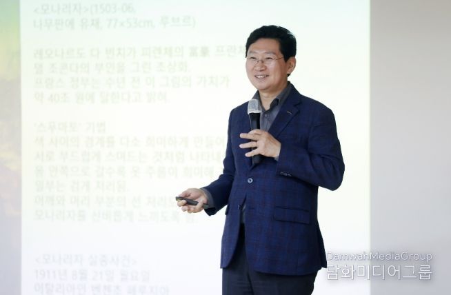 이상일 시장은 이석주 작가의 극사실주의 작품 ‘사유적 공간’으로 강연을 시작했다.