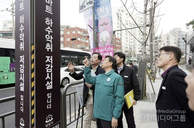 신상진 성남시장도 점검에 나서 3월 26일 오전 신흥2동, 중앙동, 은행2동에 있는 스마트 하수 악취 저감시설을 차례로 찾아가 살펴봤다.