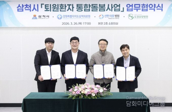 시 관계자는 “이번 협약은 퇴원 환자들이 병원 치료 이후에도 익숙한 생활터전에서 건강하고 품격 있는 삶을 이어갈 수 있는 기반이 될 것”이라며, “의료기관과의 긴밀한 협력을 통해 돌봄 사각지대를 줄이고 삼척형 통합돌봄 체계를 지속적으로 발전시켜 나가겠다”라고 밝혔다.