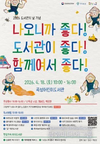 시민행정신문 강갑수 기자 | 곡성군이 오는 4월 18일 곡성어린이도서관에서 ‘나오니까 좋다! 도서관이 좋다! 함께여서 좋다!’를 슬로건으로 한 도서관의 날 기념행사를 연다.