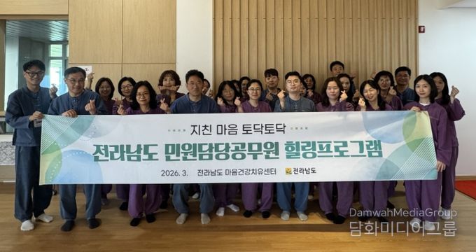 강경문 전남도 도민행복소통실장은 “행정의 최일선에서 일하는 민원담당 공무원의 심신회복이 곧 도민을 위한 더 나은 행정서비스로 이어질 것”이라며 “앞으로도 민원담당 공무원의 역량강화와 심신치유를 통해 도민에게 더 친절하고 신뢰받는 민원서비스를 제공하겠다”고 말했다.