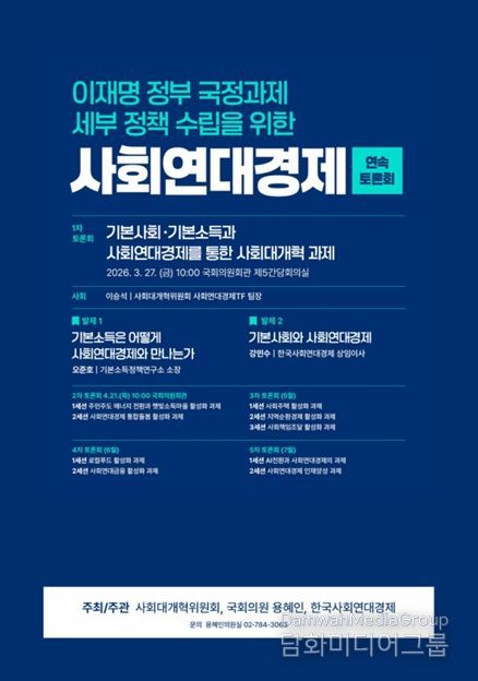 이번 연속토론회는 오는 7월까지 총 5회에 걸쳐 에너지전환, 통합돌봄, 사회주택, 사회연대금융 등 9개 분야를 다룰 예정이다. 도출된 정책과제는 각 중앙부처에 공식 전달되며, 부처별 이행계획 수립과 진행상황 설명 의무가 부과된다.