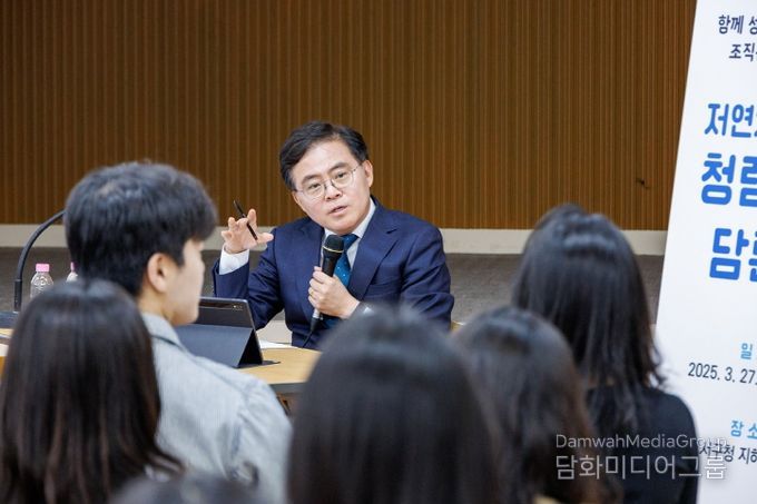진 구청장은 이날 오후 구청 지하상황실에서 열린 ‘저연차 공무원 청렴소통 담론회’에서 8급 이하 직원 60여 명과 격의 없는 대화를 나눴다.
