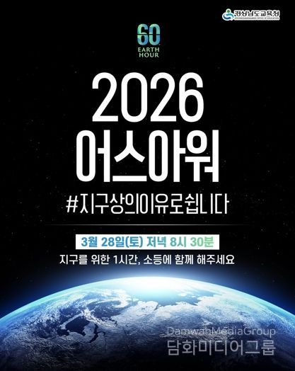 경남교육청은 기후 위기에 대응하고 에너지 절약의 중요성을 알리기 위해 전 세계적으로 진행하는 전등 끄기 캠페인 ‘어스아워(Earth Hour)’에 동참한다고 밝혔다.