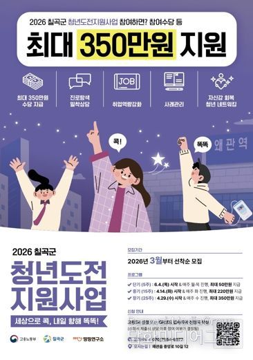 칠곡군 관계자는 “구직을 포기한 청년들이 다시 꿈을 꾸고 사회로 나아갈 수 있도록 든든한 버팀목이 되어주고, 각자의 도전이 결실을 맺어 희망으로 이어질 수 있도록 함께 하겠다”고 밝혔다.