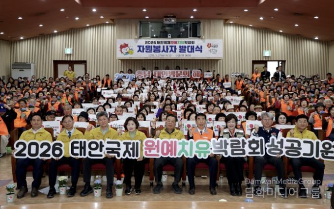 시민행정신문 기자 | 태안군이 지난 27일 ‘2026 태안국제원예치유박람회’ 개최까지 29일을 남겨놓고 군청 대강당에서 개인 및 단체 봉사자 350여 명이 참석해 군민자원봉사단 발대식을 개최하고 박람회의 성공적인 개최를 위한 조직 결속 강화에 나섰다.