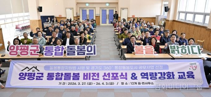 시민행정신문 기자 | 양평군은 ‘의료·요양 등 지역 돌봄의 통합지원에 관한 법률(이하 돌봄통합지원법)’ 시행일인 27일 개군면을 시작으로, 4월 3일까지 관내 12개 읍면을 순회하며 ‘양평군 통합돌봄 비전 선포식’과 인적안전망 역량강화 교육을 실시한다고 밝혔다.