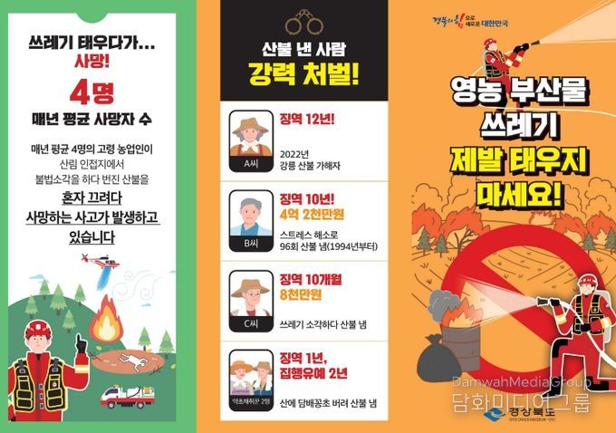 이 밖에도 경북도는 민방위 사이렌을 활용한 산불 예방 홍보 및 주민대피 계획을 수립하고 도-시․군 실시간 소통채널을 구축해 즉각적인 대응이 가능하도록 개선했으며, 기상정보와 산불 위험 지수를 매일 공유하고 산불 발생 상황을 즉시 전 시․군에 전파해 인명 피해가 발생하지 않도록 노력하고 있다.