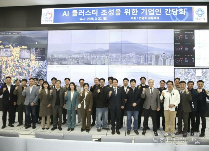 안양시(시장 최대호)는 30일 오후 4시 스마트도시통합센터에서 관내 우수 AI 기술 보유 기업 대표 및 임직원 30여 명을 초청해 'AI 클러스터 조성을 위한 기업인 간담회'를 개최했다고 31일 밝혔다.