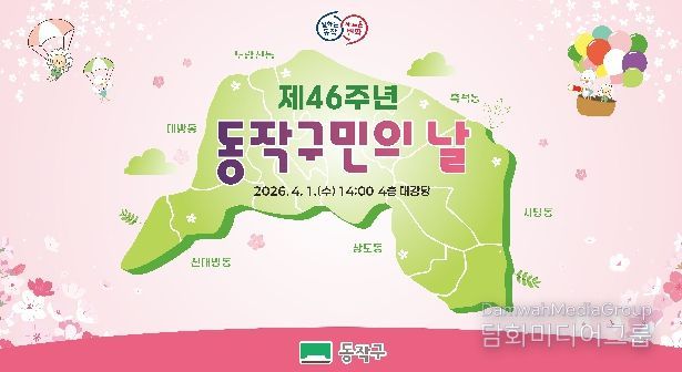 시민행정신문 이존영 기자 | 동작구가 오는 4월 1일, 제46주년 구민의 날을 맞아 ‘동작구민의 날 기념식’을 개최한다고 밝혔다.