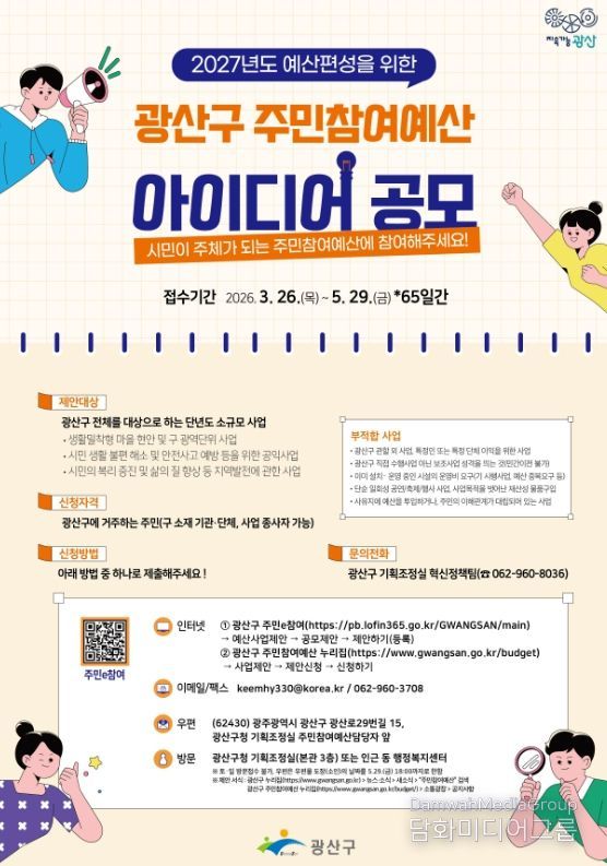 시민행정신문 기자 | 광주 광산구가 지역 문제를 해결할 시민의 아이디어를 담은 주민참여예산 사업 제안을 공개 모집한다.