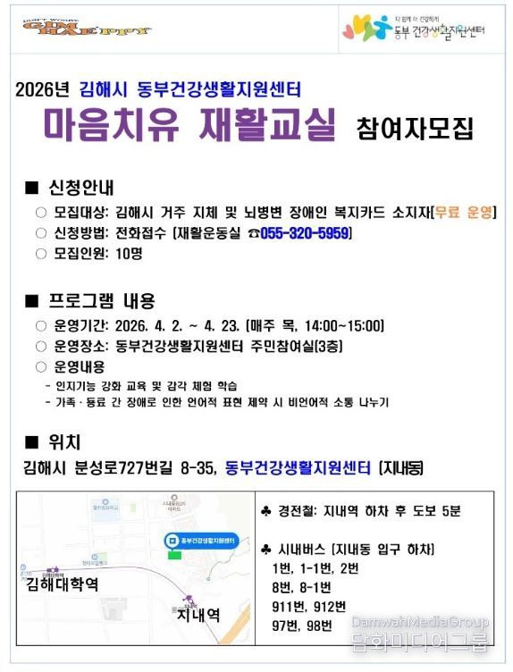 자세한 사항은 동부건강생활지원센터 재활운동실로 문의하면 된다.