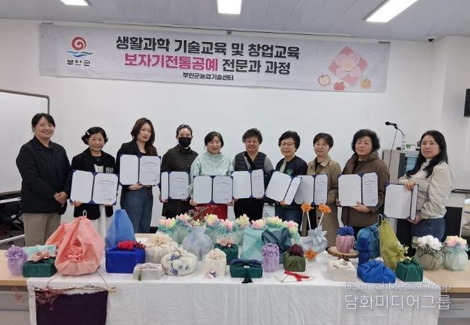 시민행정신문 강갑수 기자 | 부안군농업기술센터는 2026년 상반기 생활과학기술교육의 일환으로 운영한 보자기전통공예전문가 자격과정을 성공적으로 마무리하고 지난달 31일 성과전시회와 함께 수료식을 실시했다고 밝혔다.