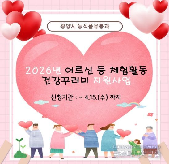 시민행정신문 강갑수 기자 | 광양시가 어르신·장애인·아동 등 실외 활동이 어려운 이용자를 대상으로 ‘체험활동 건강꾸러미 지원사업’을 추진하고, 4월 15일까지 신청을 받는다.