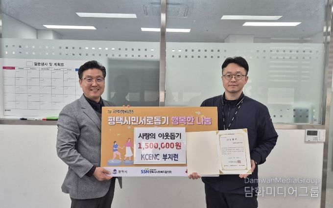 시민행정신문 강갑수 기자 | ‘(주)KCENC 사내동호회 부지런’은 지난 3월 19일 평택시 관내 어려운 이웃들을 돕기 위해 평택행복나눔본부에 성금 150만 원을 전달했다. 이번 기부금은 회원들이 러닝, 등산, 헬스 등 다양한 운동을 통해 소모한 열량(칼로리)을 기부금으로 환산, 전환해 적립한 금액을 모아 마련됐다.