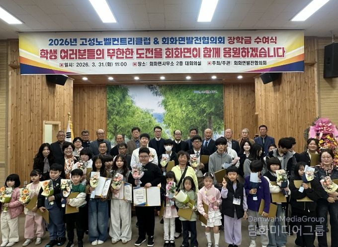 시민행정신문 강갑수 기자 | 고성군 회화면발전협의회(회장 권택열)에서는 3월 31일 11시, 회화면사무소 대회의실에서 2026년 노벨컨트리클럽 · 회화면발전협의회 장학증서 수여 행사를 개최했다.